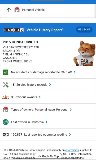 Used 2015 Honda Civic Sedan LX LX/ BLUETOOTH/ BACK UP CAMERA|100,962 Miles|Front Wheel Drive
